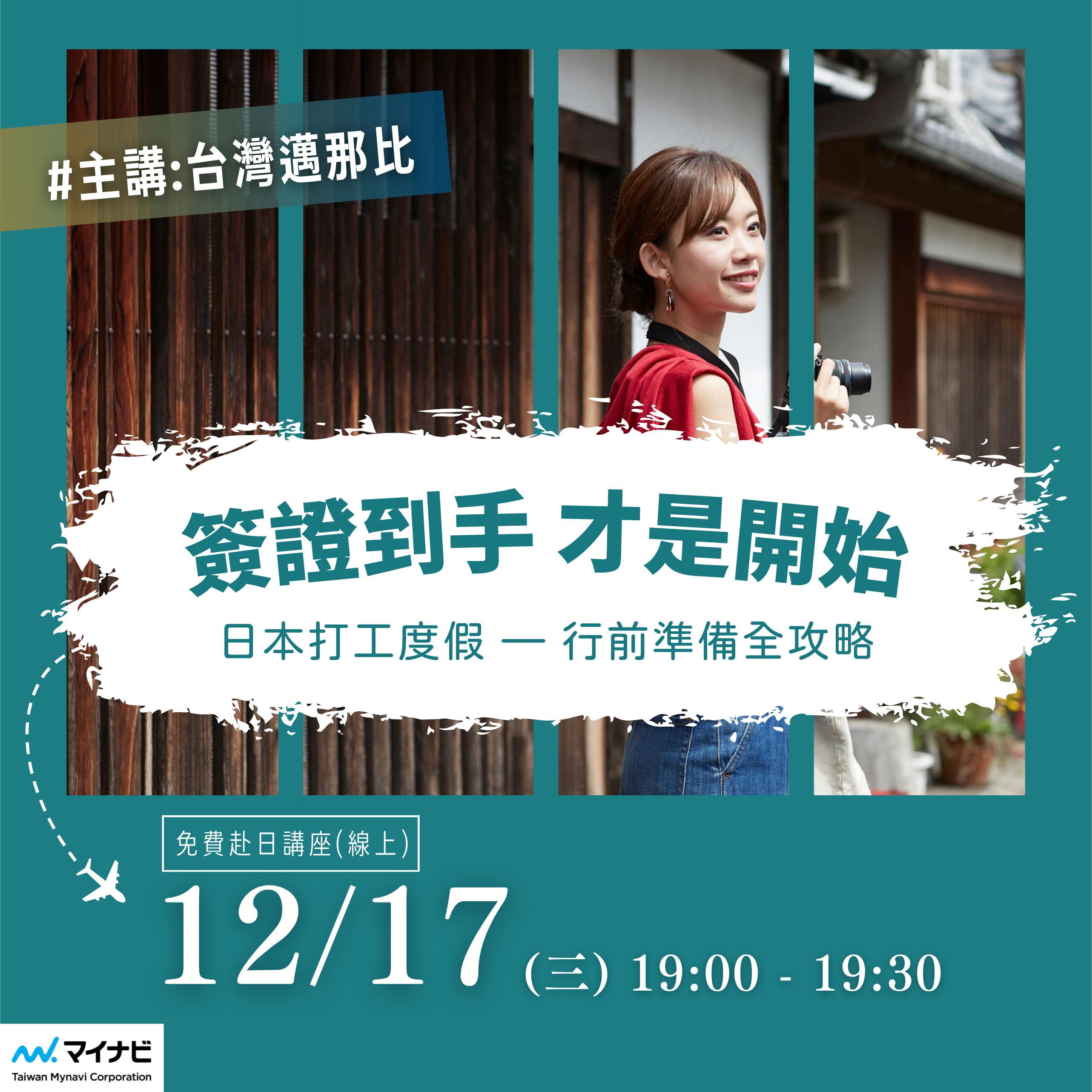 簽證拿到,只是「決定出發」的那一步,真正麻煩的是:接下來到底要怎麼準備。這場行前講座包含,領證、收行李,到日本後第一個月找工作、安頓生活的必備清單,讓你少踩雷一點,多一點安心。✦ 本次講座內...