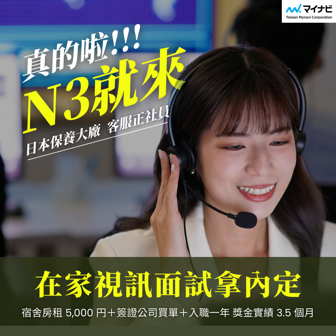 N3職缺限時招募 開放線上面試!-【日本知名保養品大廠 客服人員】@熊本 職缺情報:✅員工宿舍;房租只需付 5,000 円 (有Wi-Fi)✅工作簽證支援、免費赴日機票✅免費巴士接駁通勤✅有員工餐廳...