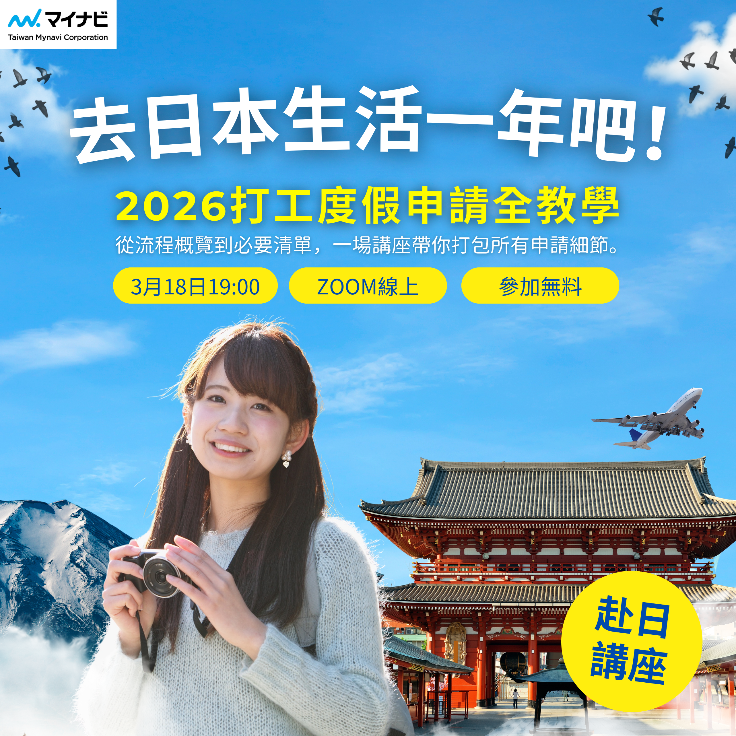 【台灣邁那比3月講座】走吧!今年一起去日本生活—2026打工度假申請全教學