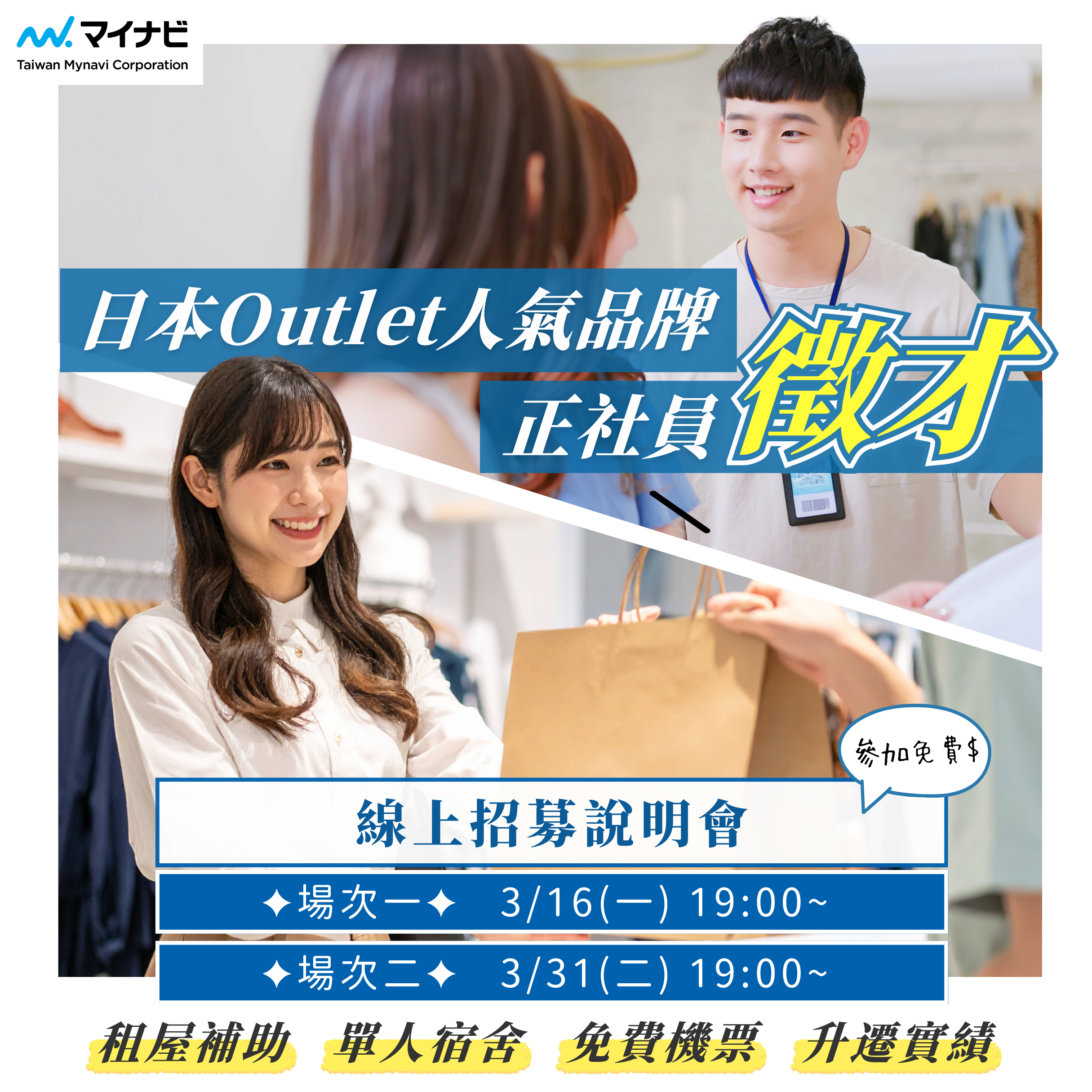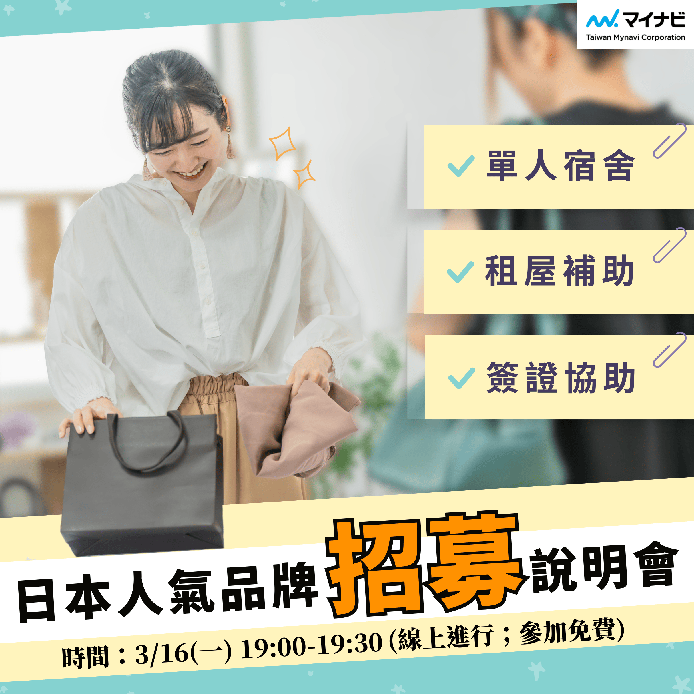 【4/11 (六)日本 Outlet 人氣品牌正社員招募面試會】住宿、簽證、機票一次到位,每年固定加薪! 不只是銷售,更提供明確的職階晉升與管理職發展路徑。 現場多品牌面試,當天就能取得內定,202...
