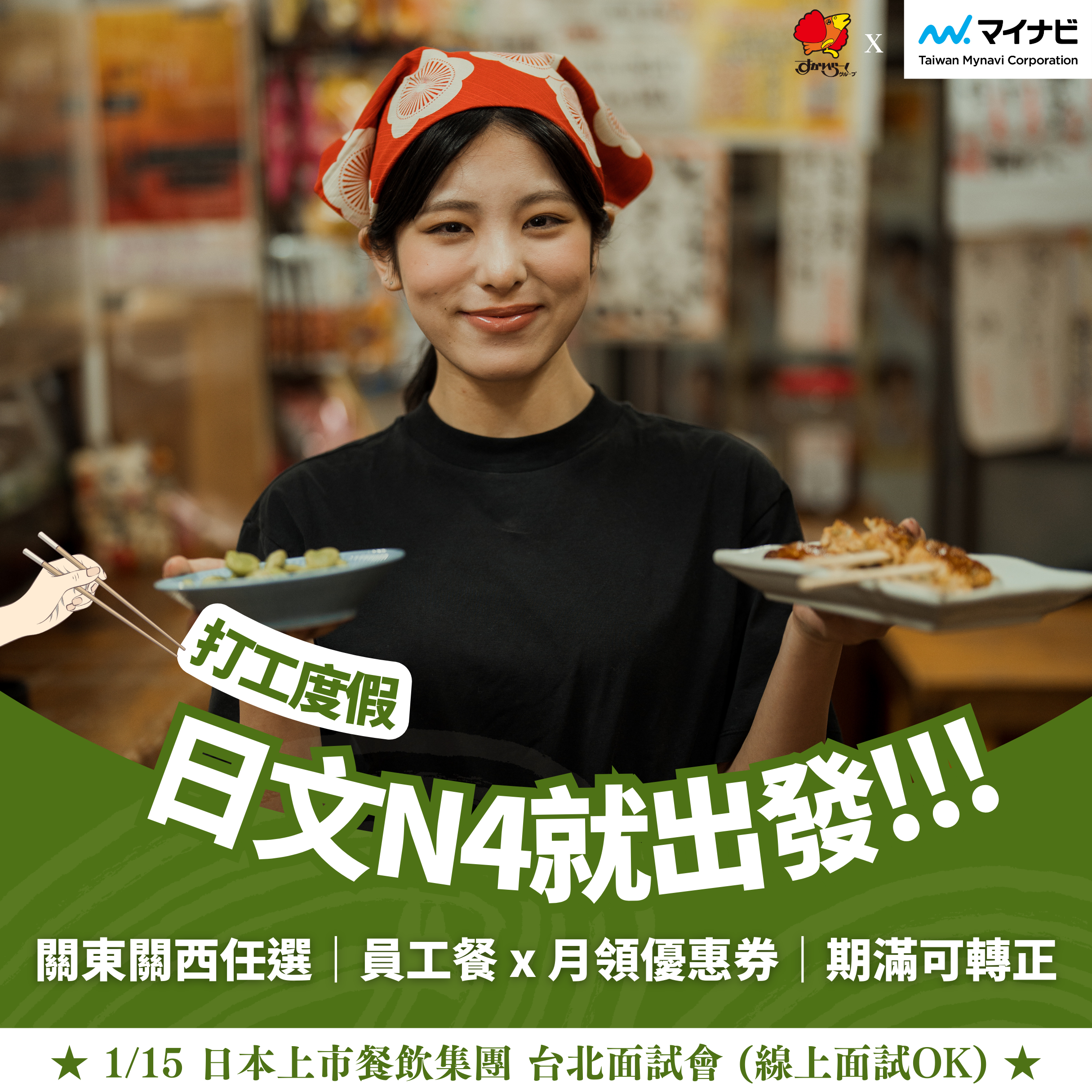 【 1.15 (四) 打工度假面試會 】日本雲雀餐飲集團・東京、大阪熱烈招募中 ! JP36001